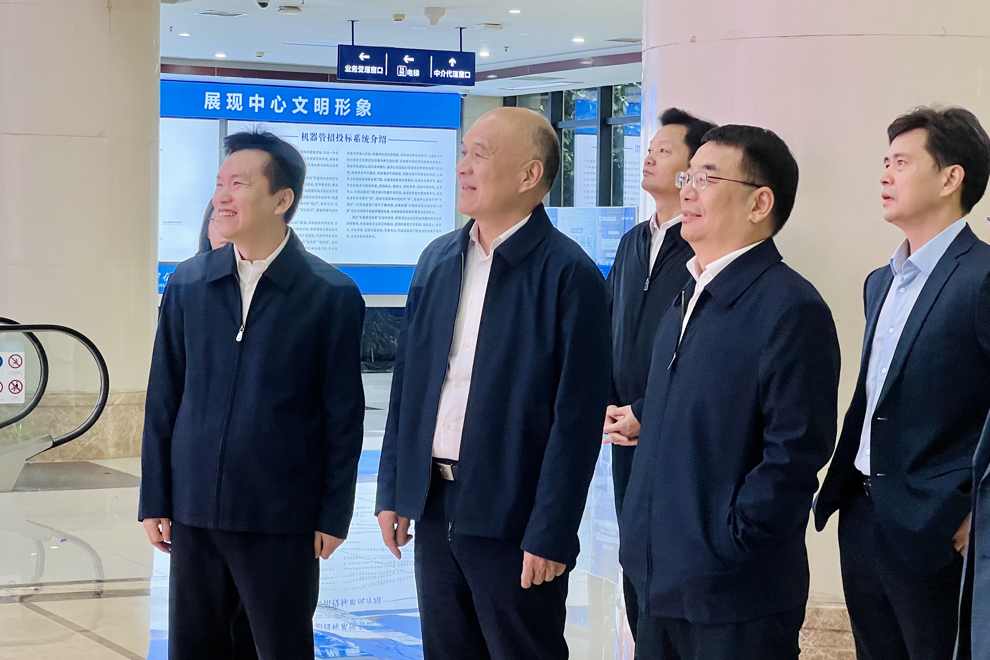 10月20日,市委书记刘越高赴衡阳市公共资源交易中心专题调研"机器管招投标"系统应用工作。