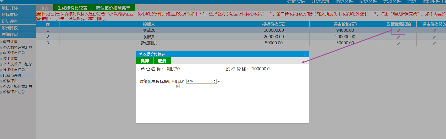 存在中小微、残疾人福利等情况需要扣除的可以点击报价修改按钮进行扣除